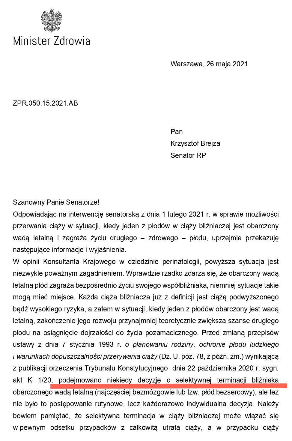Krzysztof Brejza Biuro Senatorskie On Twitter Ciaza Blizniacza 1 Plod Jest Zdrowy A 2 Ma Wade Smiertelna I Zagraza Zyciu Pierwszego Do 2020 Plod Terminowano By Pierwsze Z Blizniat Moglo Przezyc Minister Zdrowia